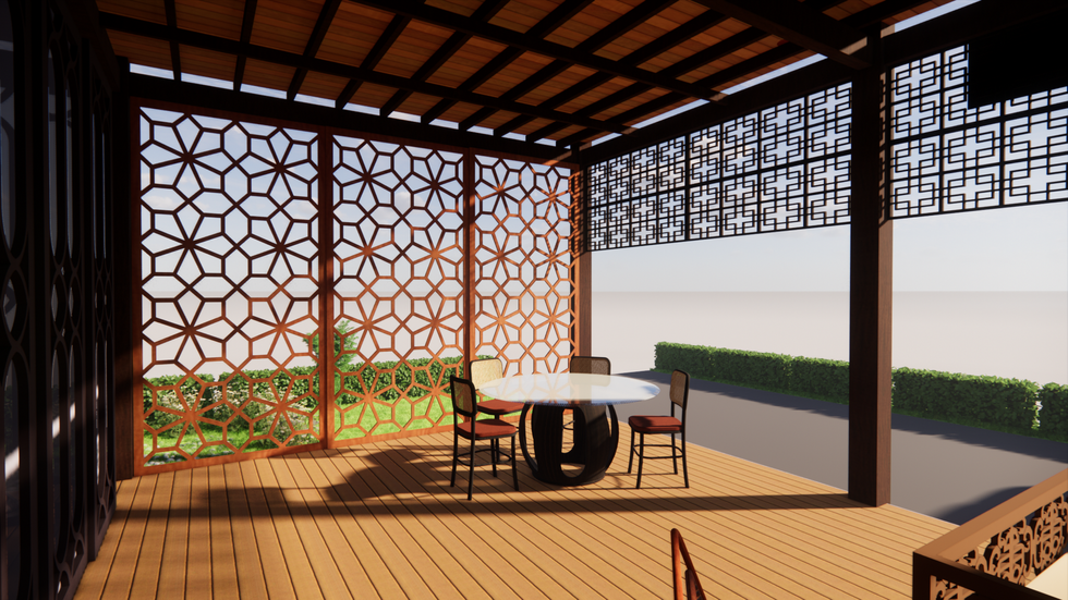 Treading lightly on land, Lim's house promotes the integration between - The beauty of baba nyonya architecture and the art of nyonya beaded shoes by Mr. Lim Tian Seng, an artist of nyonya beaded shoes. - An open floor plan that promotes the views of interminable paddy fields embracing Lim's House. - Simple from the exterior but the interior is unpredictable, with a courtyard of ficus tree as the focal point and plans with different layers which connects nature and architecture