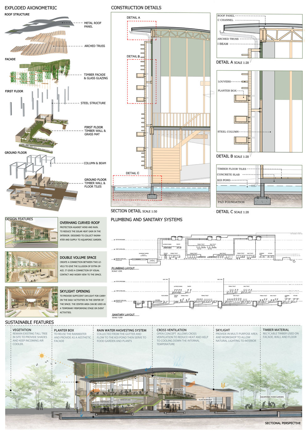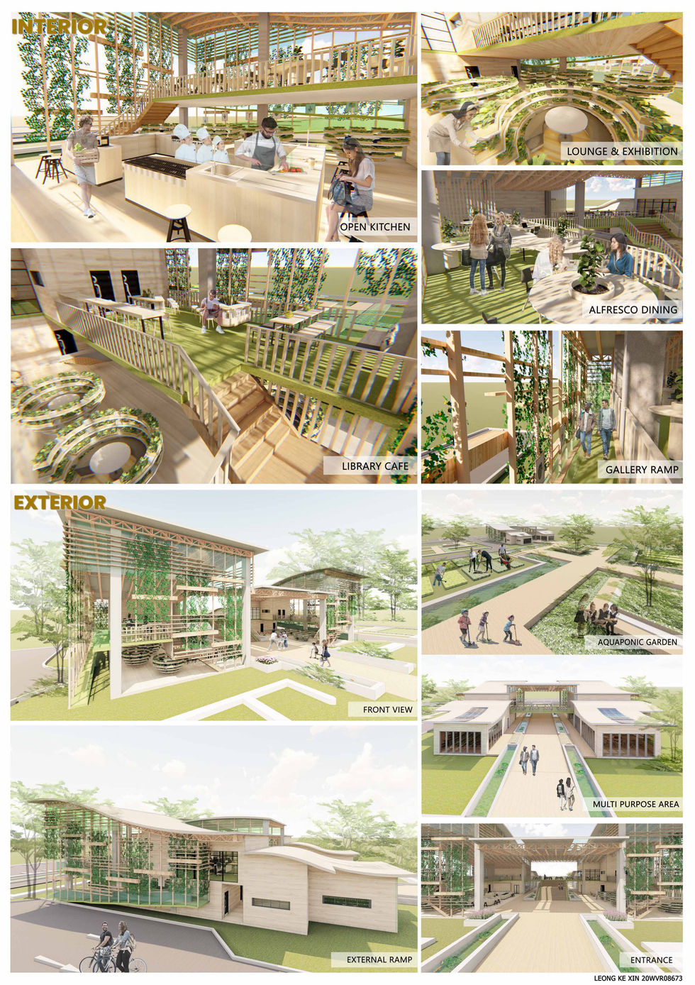 Agriyogro Youth Center stands for agriculture with youth in growth. The idea came from youth growth combined with the urban farming concept. It aims to create a connection between youth and agriculture. The design intention is to give youth the opportunity to explore the use of plants. From the initial seed to plant and fruits collection to take a further step for food preparation or sell to the local community.